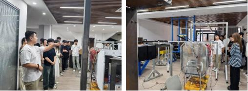 3、徐州北矿智能科技有限公司参观学习。公司18级员工冯英杰作为企业导师,向员工介绍了公司的主营产品及典型应用场景,并结合实际产品现场剖析了PLC(可编程逻辑控制器)、单片机及各类传感器在机器人执行控制、环境感知、自主导航等环节中的具体应用,有效展示了课本知识在实际产品中的真是应用价值。