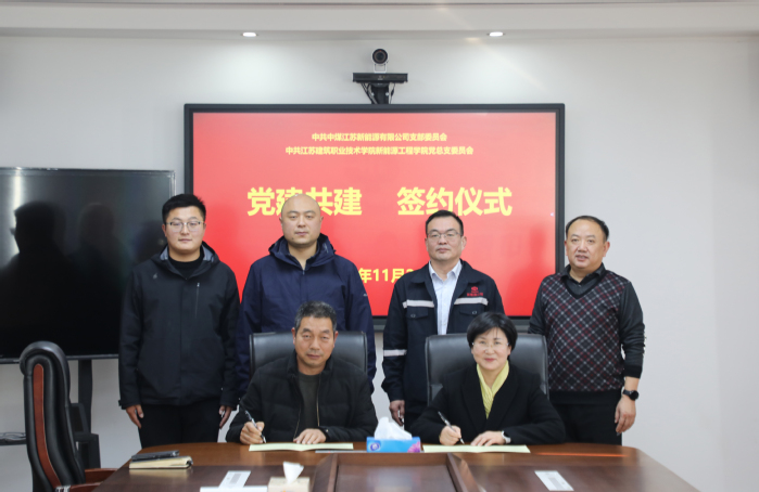 为深入贯彻落实习近平总书记关于“江苏要在强链补链上展现作为”的重要指示精神,深化产教融合,创新党建工作模式,近日,公司党总支书记徐新斌率队赴中煤江苏新能源有限公司开展校企党组织共建活动。中煤江苏新能源有限公司党支部书记、董事冯长萍,总经理王明甫,发展财务部部长柏祖海等企业领导热情接待并出席共建活动。