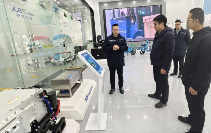 座谈会上,沛县新氢动力科技有限公司总经理张凯对公司代表的到访表示诚挚欢迎,并详细介绍了公司作为国内首批聚焦氢能工业车辆燃料电池技术应用的企业,在氢能燃料电池生产基地建设方面的成果。他特别提到公司自主研发的“精卫氢服”固态金属储氢技术,该技术实现了氢气“运、储、加、用”环节的一体化解决方案,是全球首款在工业车辆领域批量应用的固态金属储氢技术。张凯表示,希望与公司在氢能技术研发、人才培养等方面建立深度合作。