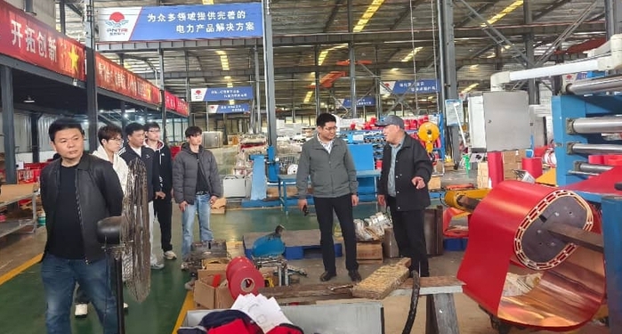 会上,推荐实习就业员工进行了自我介绍,鹏泰电气陈部长与员工进行了亲切交流;会后,在陈部长的陪同下,公司一行实地参观了企业生产车间,随行员工现场观摩了产品生产流程,直观了解了电气行业技术前沿,对实习就业岗位充满期待。